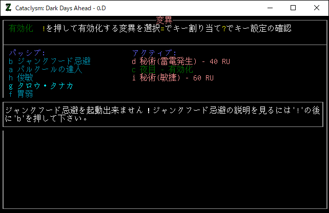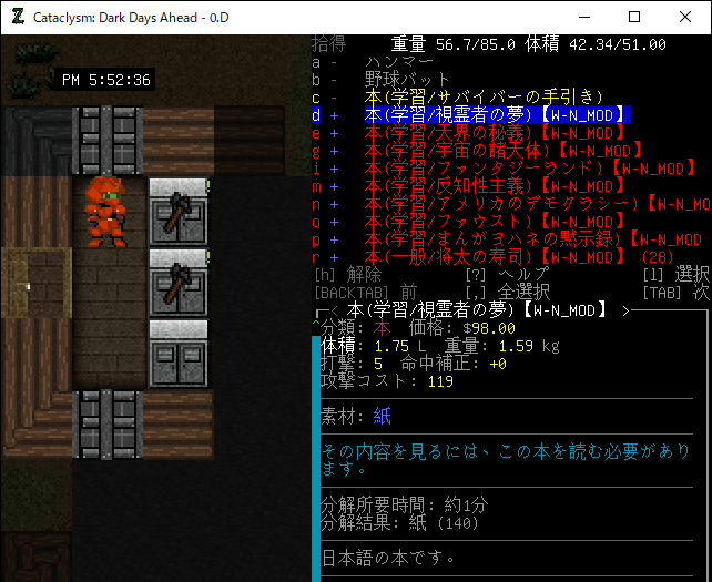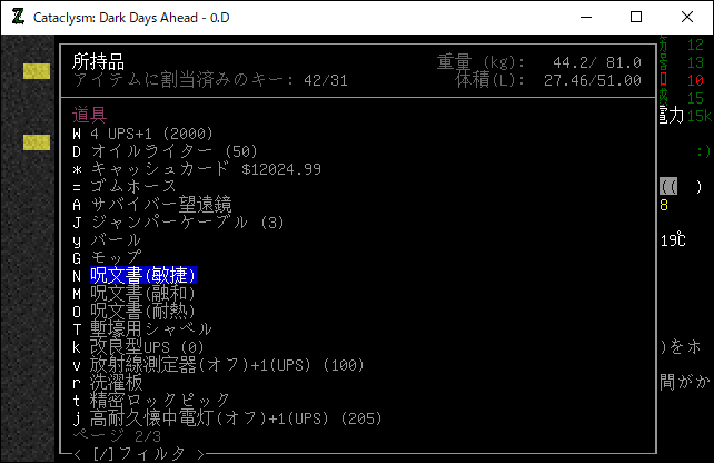 この投稿は「Cataclysm Dark Days Ahead」のプレイ日記です。目次はこちら。