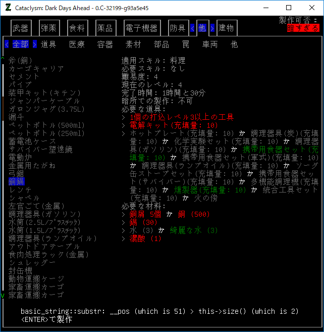 この投稿は「Cataclysm Dark Days Ahead」のプレイ日記です。毎日更新をします。目次はこちら。