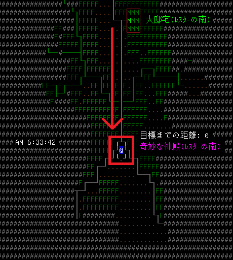 『敵から離れてウロウロ作戦』が大成功して敵は全滅した。しかし、必勝かと思われるこの作戦にも弱点はあります。ウロウロしていると周囲を岩に囲まれて動けなくなったりするのだ。その場合は岩を破壊したり、テレポートしないと詰むことになる。自分は岩に囲まれてしまったらCBM:確率高速移動を使って脱出しました。