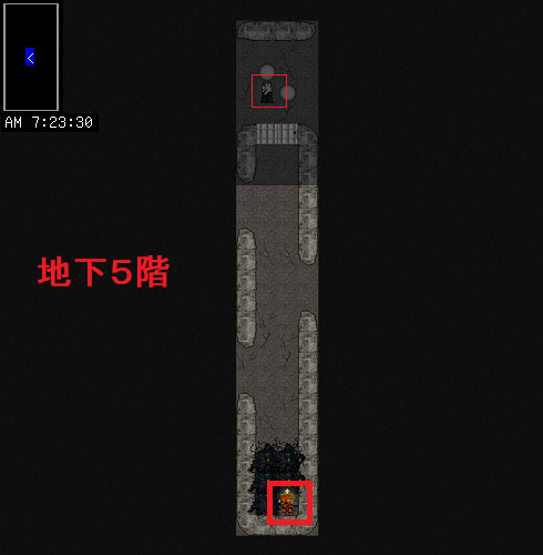 改良型UPSの充電が完了したときの俺は上の画像。いつの間にか4体の盲目のものに接近されていました。地下5階に降りたときは盲目のものなど見当たらなかった。ということは、どこかの空洞に配置されていたのだろう。