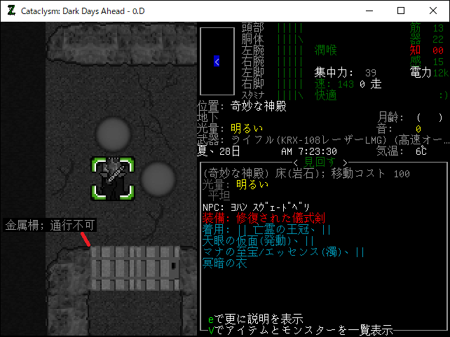 この投稿は「Cataclysm Dark Days Ahead」のプレイ日記です。目次はこちら。