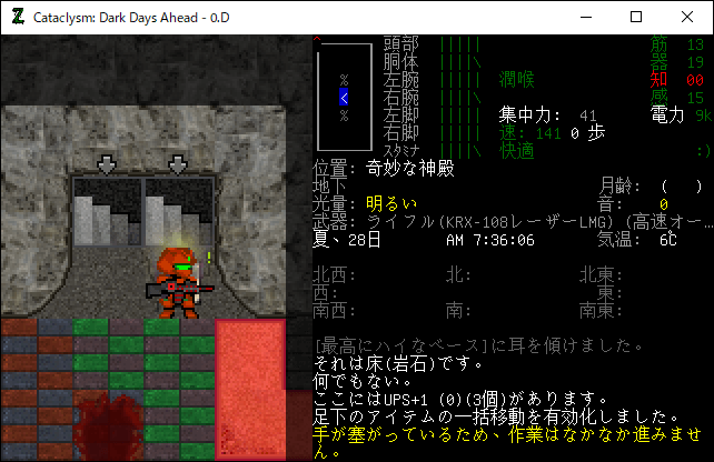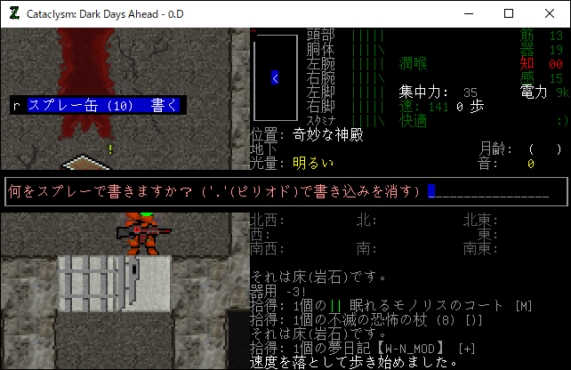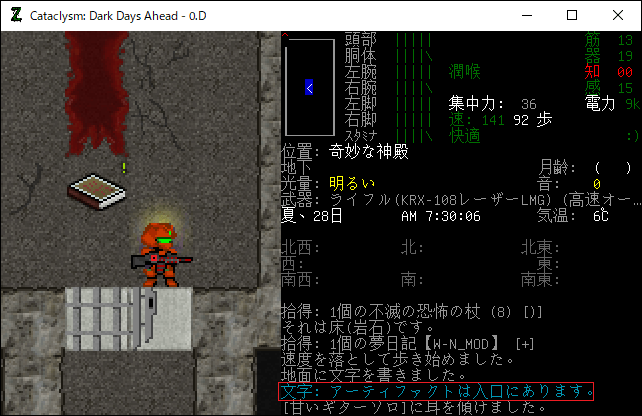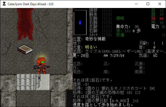 Cataclysmのプレイ日記を始めます。レスターの南にある奇妙な神殿を制圧しました。ようやく安全にレスター南の探索を行えるようになったね。もうこんなに疲れる攻略は二度とやりたくない(泣)。