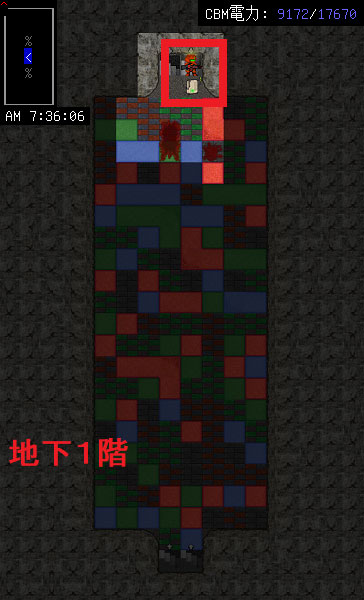 地下1階は床一面がパズルになっている階層だ。パズルといってもそれほど難しくはない。攻略の方法を知らなくても適当に歩いていれば突破できます。たまに岩に囲まれて詰むけどCBM電力が9000もあるし余裕だろう。