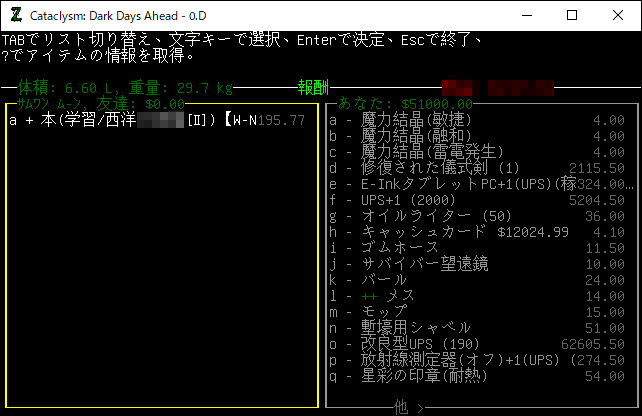 この投稿は「Cataclysm Dark Days Ahead」のプレイ日記です。目次はこちら