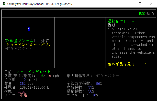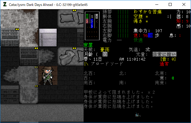 この投稿は「Cataclysm Dark Days Ahead」のプレイ日記です。毎日更新をします。目次はこちら。