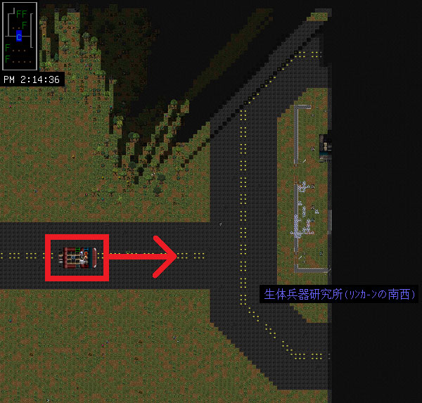 奇妙な神殿の東には道路が北と南に分かれているT字路がありました。レスターの南は迷路みたいに道路が入り組んでいるから頭がパンクしそうだよ。この場合は北側の進路を選択するべきだろう。北側にはリンカーンの町があるので小型無人戦車などに救急車を破壊されても生き延びることができる。