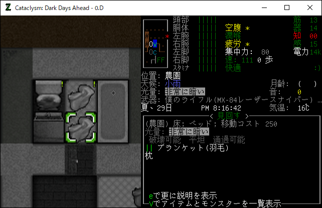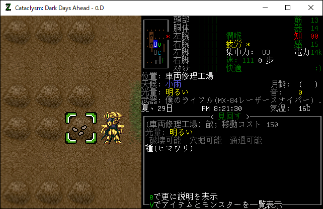 この投稿は「Cataclysm Dark Days Ahead」のプレイ日記です。目次はこちら。