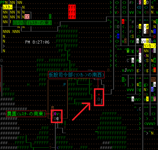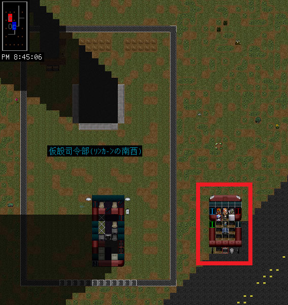 とはいえ季節が夏なのでPM9:00くらいまでは日没しないと思われる。上の全体マップを見てのとおり仮設司令部は目と鼻の先だ。あと30分くらいは施設を探索する余裕があるんじゃないのかね。現在地のすぐ北に『農園』があるので寄っていこうかな。