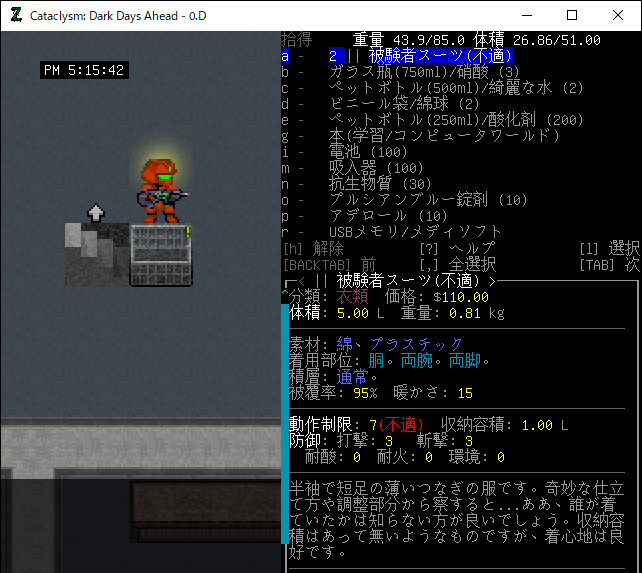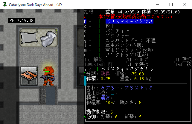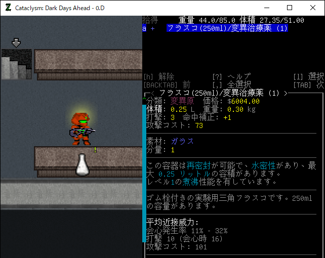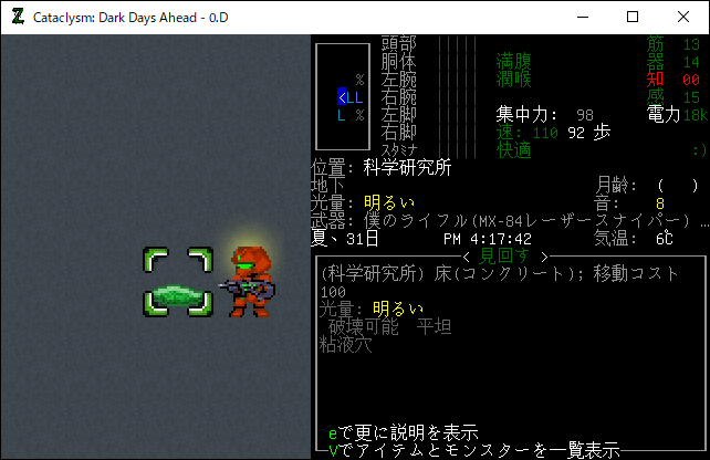 この投稿は「Cataclysm Dark Days Ahead」のプレイ日記です。目次はこちら。
