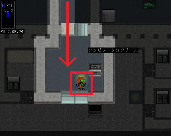 コンピューターで施錠されたドアを発見しました。この先にあるのは地下1階における南端のフロアだと思われる。1個くらいはテンションの上がるアイテムが欲しい。