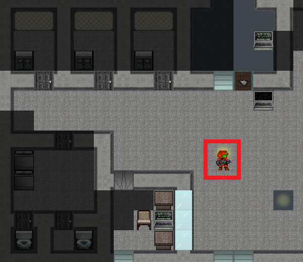 科学研究所の地下1階北側はゾンビたちを閉じ込める牢獄になっていました。コンピューターのハッキングに成功すれば牢獄のドアが開いてゾンビたちを解放できるのだ。よく見るとベッドがあるけどプレイ中はスルーしちゃった。