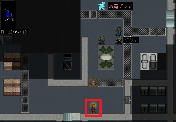 北に進んで最初に到達したのは木箱とロッカーが配置されている部屋だった。ロボットはいないけど4体の雑魚ゾンビが徘徊していやがる。なんとなく血清を拾える予感がします。