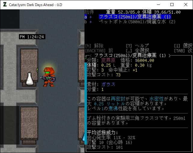 この投稿は「Cataclysm Dark Days Ahead」のプレイ日記です。目次はこちら。