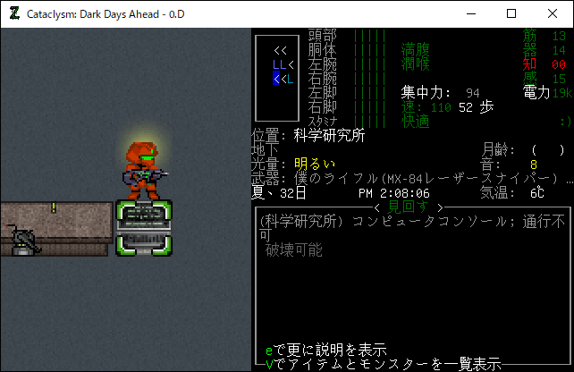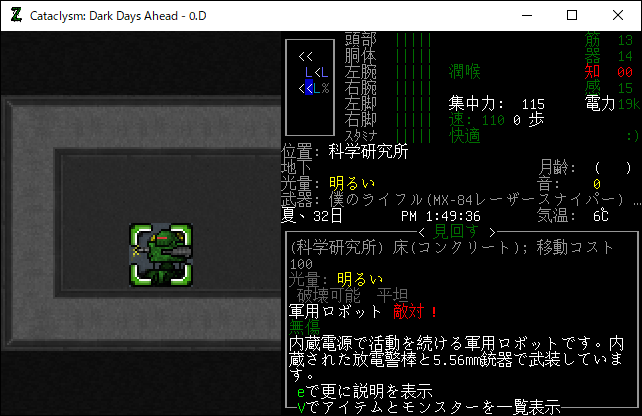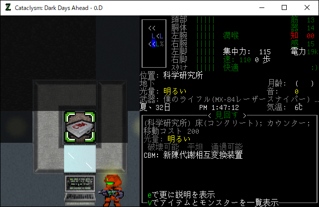 Cataclysmのプレイ日記を始めます。引き続き科学研究所の地下2階を探索しよう。今回の投稿で地下2階にある全てのフロアを歩き回りたい。