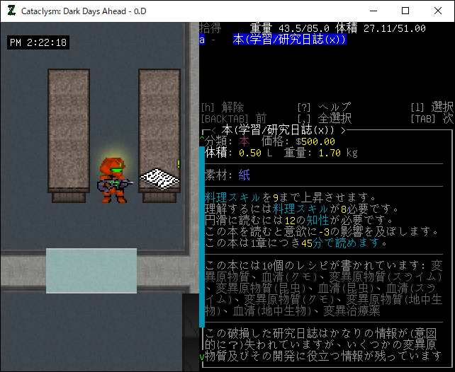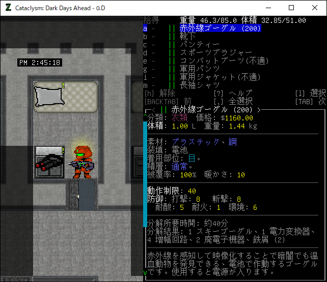 この投稿は「Cataclysm Dark Days Ahead」のプレイ日記です。目次はこちら。