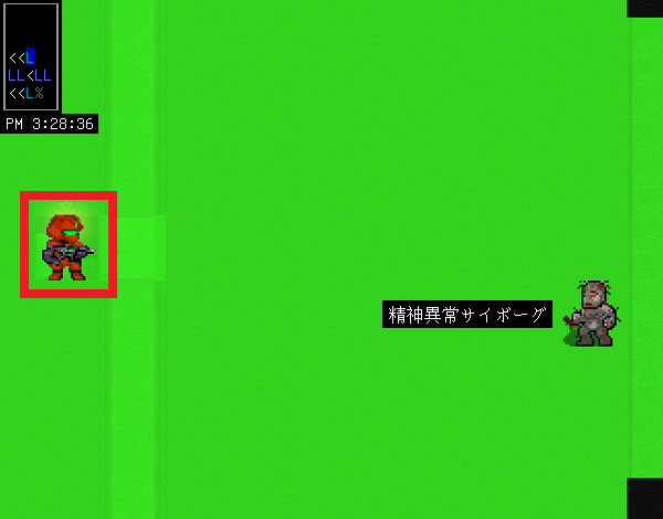 以下は北側を再度、探索したプレイログになります。透視をしながら歩いていたら変な敵が出現しやがった。精神異常サイボーグなんて今まで遭遇したことないよね。