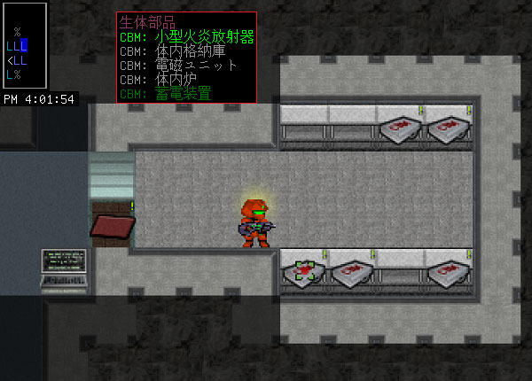 CBMが保管されている部屋を見つけました。科学研究所には呆れるくらい大量のCBMが置かれています。科学研究所からスタートするシナリオって多種多様なCBMを利用して脱出するのかな。いや、CBMはコンソールをハッキングできないと入手できないから、そんなに単純な攻略方法ではないか。