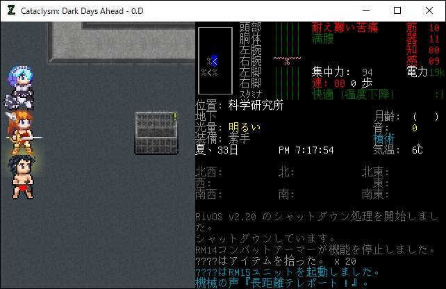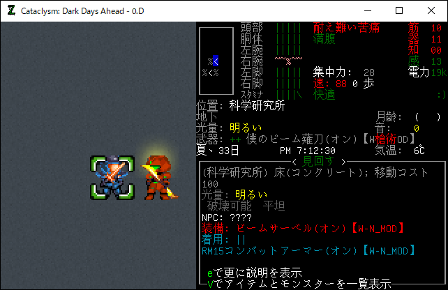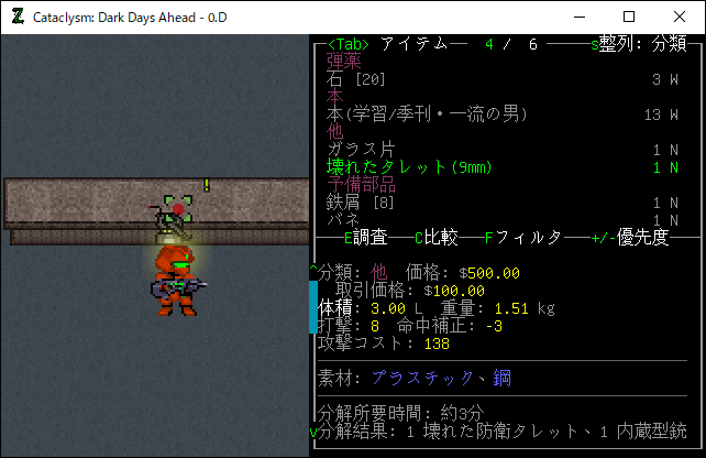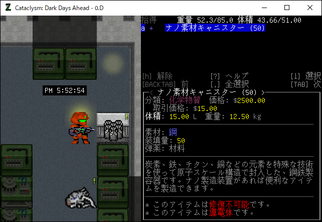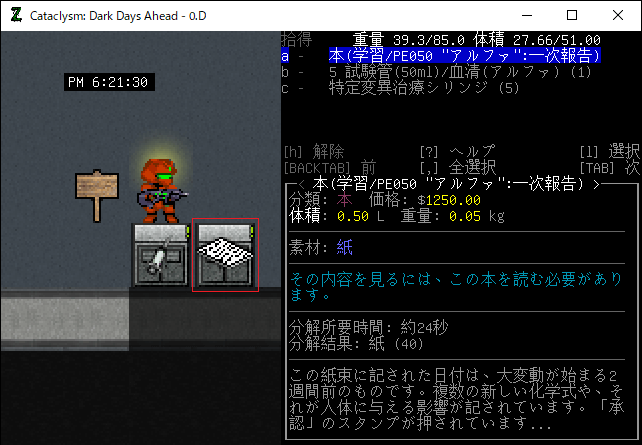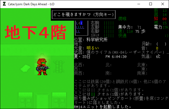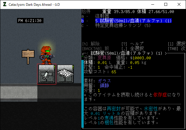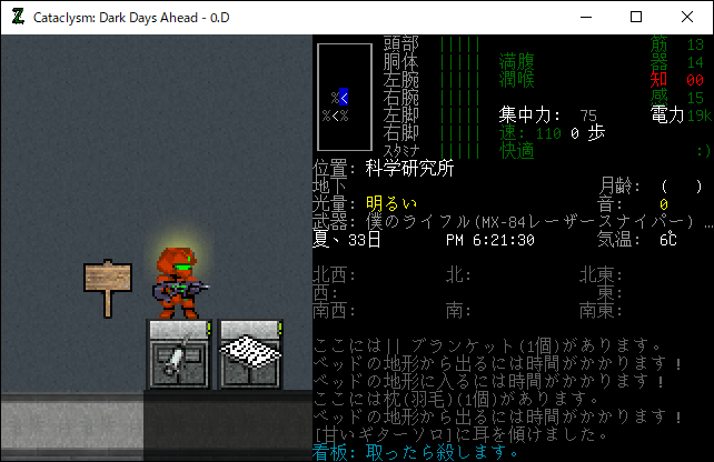 この投稿は「Cataclysm Dark Days Ahead」のプレイ日記です。目次はこちら。