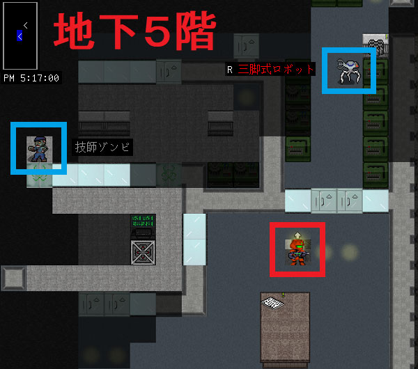 地下5階に出現する敵はシャレにならない。透視で敵の位置を把握しながらズンズンと侵攻していきます。また三脚式ロボットが出現したようだ。技師ゾンビもいるので注意して行こうか。