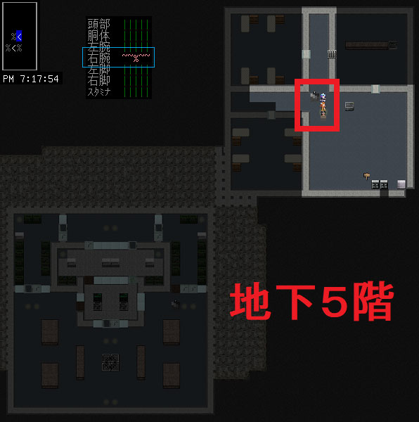 現在地は科学研究所の最深部である地下5階だ。何から手をつければ良いのか分からないくらい無茶苦茶な状況になった。まずは骨折の治療から始めるべきか。それともまともな衣類を用意する?