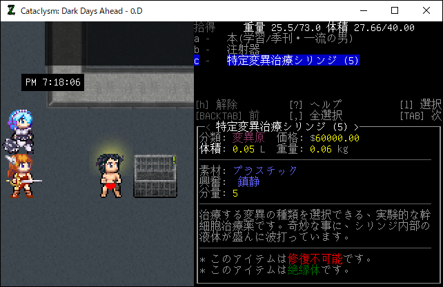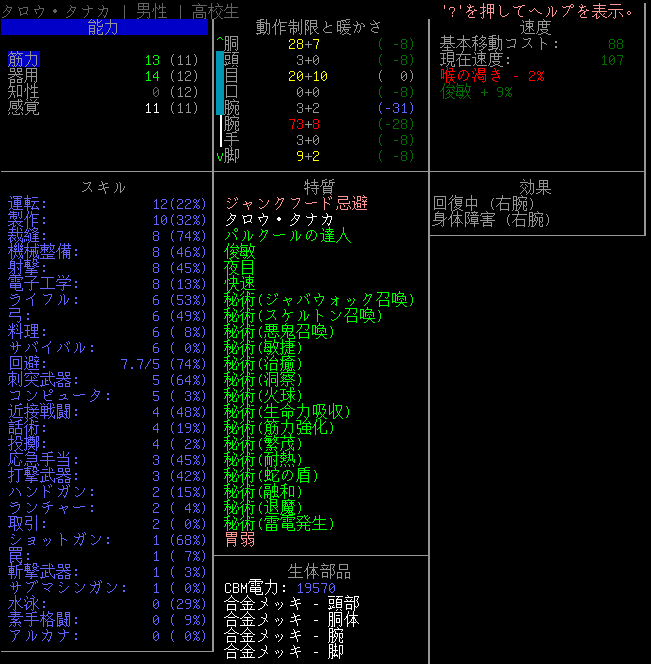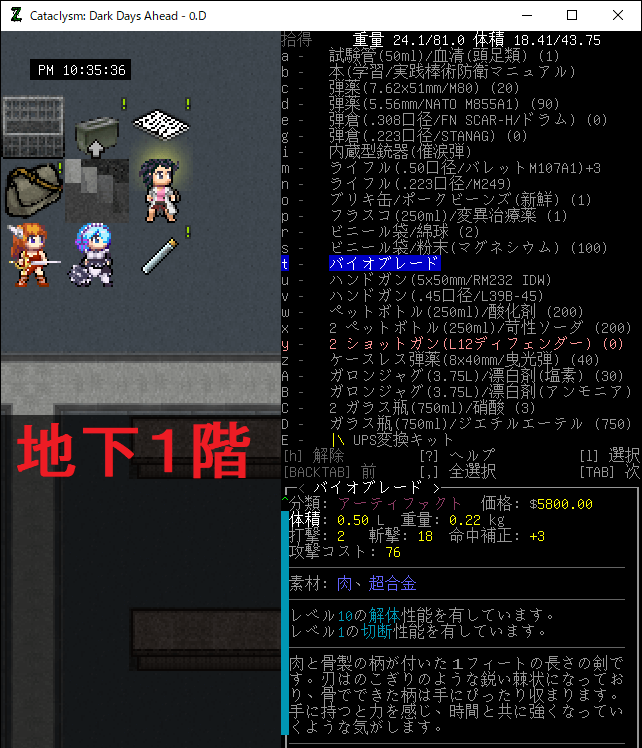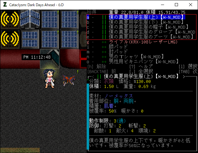 この投稿は「Cataclysm Dark Days Ahead」のプレイ日記です。目次はこちら。