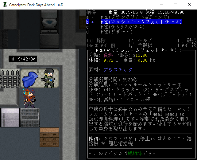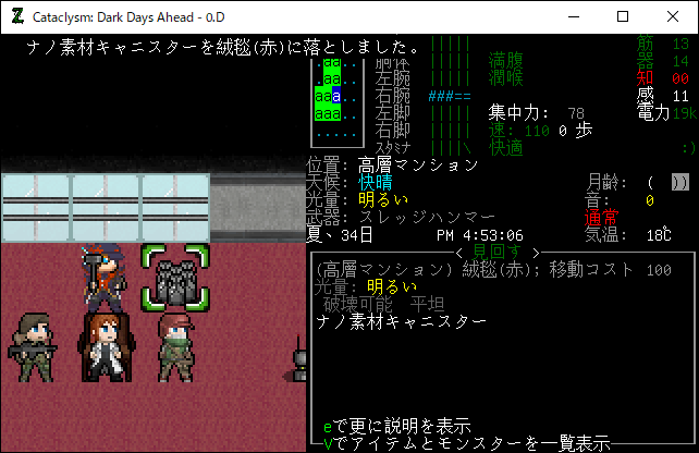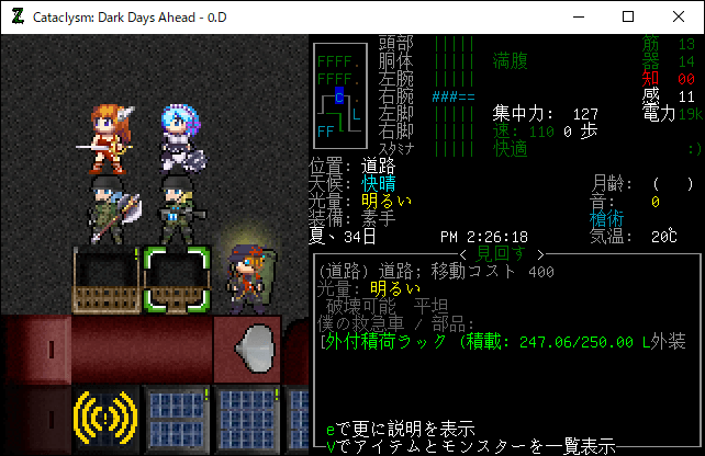 この投稿は「Cataclysm Dark Days Ahead」のプレイ日記です。目次はこちら。