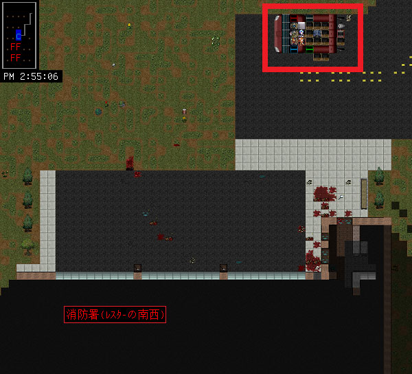 高層マンションへ帰還する前に寄り道したい施設があります。数日前に制圧した『消防署』に行きたいのだ。科学研究所では原子力電池を1個も拾えなかった。原子力電池のために消防署からロボットを回収しておきたい。