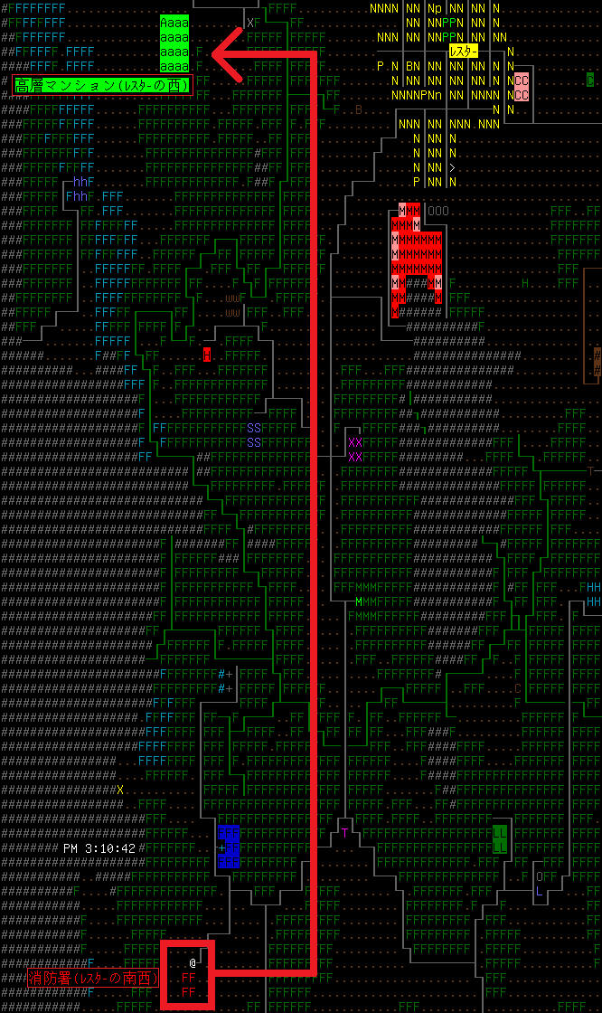 というわけで科学研究所から高層マンションへ移動します。走行する経路は上の画像になる。北へ向かって長距離を移動することになるけど、道路があるので快適な旅路になると思う。