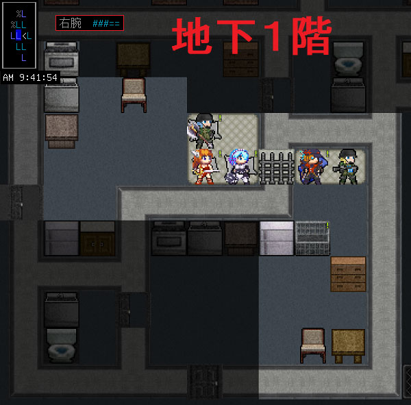 ちなみに起床した直後の俺たちは上の画像。地下1階にある居住区で休息しながら科学研究所を探索していました。もう科学研究所の制圧は完了した。サッサと朝食を取って出発しましょう。