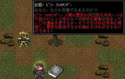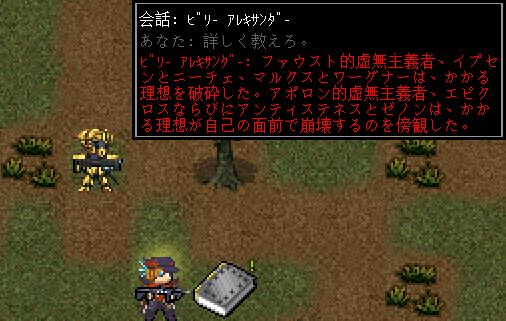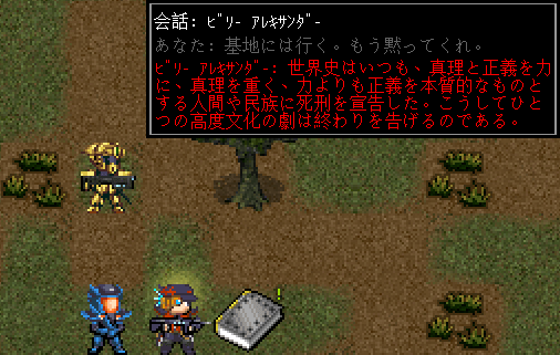 願いを叶えて頭を良くしたいなんて、恥ずかしいことを言ってしまった。どうせ州兵基地は制圧に向かう予定だった。制圧する過程で災厄とやらも阻止できるだろう。俺が考えていた以上に州兵基地の状況がマズいことになっているのは理解した。だからもう黙って帰ってくれよ。黄色いNPCの返答は有名な本から引用した名言だった。