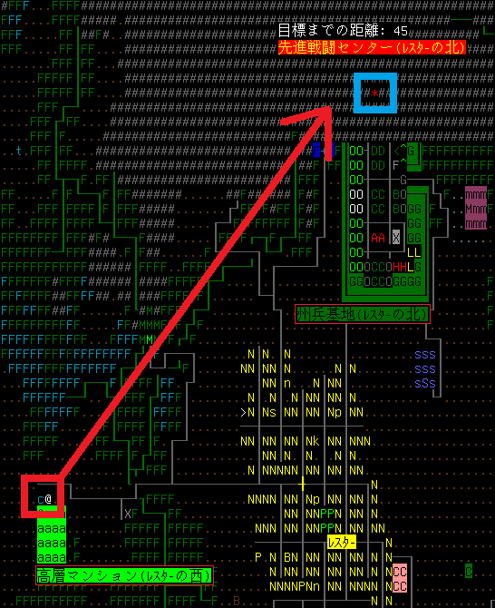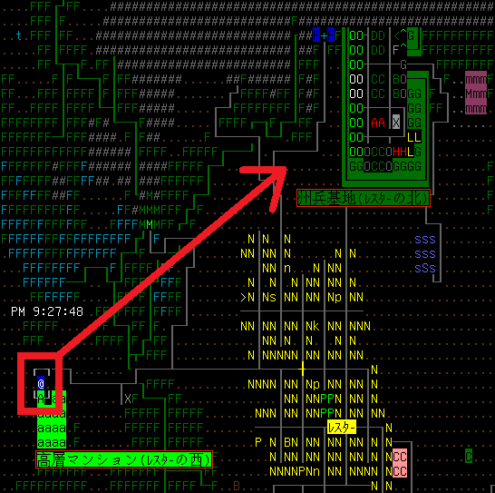 『M』コマンドでクエストの内容を確認してみよう。現在の有効な依頼は上の画像。クエストの名称は『願いを叶える場所』らしい。願い『が叶う』場所ではなく、願い『を叶える』場所なのか。つーか、本当に州兵基地へ行けば願いが叶うの?