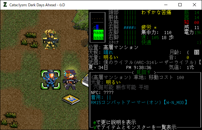 Cataclysmのプレイ日記を始めます。前回の投稿は州兵基地に攻め込む準備をしました。科学研究所からゲットした血清で身体を強化したんだよね。今回は敵対NPCからRM14コンバットアーマーを取り戻します。