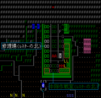 初挑戦の施設だから作戦を立ててもコロコロと変わりやがる。3分ほど歩いて目的の中隊作戦室が見えてきました。画像が縮小されているから分かりにくいけど、中隊作戦室の中に火の玉みたいなものがある。