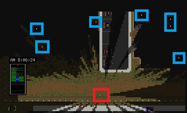 ちょっと上の画像を見てください。森林に火の玉が発生しやがった。これは森林に隠れているロボットを感知したんだよね。つまり俺は森林にいるロボットを恐れなくても良いのです!だって遠くから居場所が分かるんだから避けて通るのもぶっ倒すのも思いのままだ。