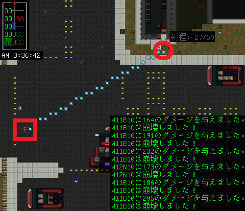 レーザースナイパーは遠距離用のライフルなので敵との距離が近いと負けてしまう。武器庫を漁ったのは大失敗だったのだ。CBM:確率高速移動を稼働して屋外へ逃げます。このミスによりしばらく命がけの戦いをすることになった。