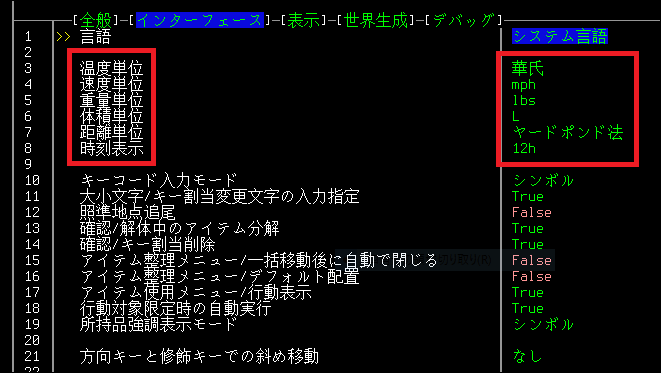 もうゲームを遊ぶ準備は最低限できたのだけど、少しオプションを変更しておきましょう。オプションは難しくて私はよくわからないのですが、デフォルトだと温度や速度の単位が華氏やmphになっています。