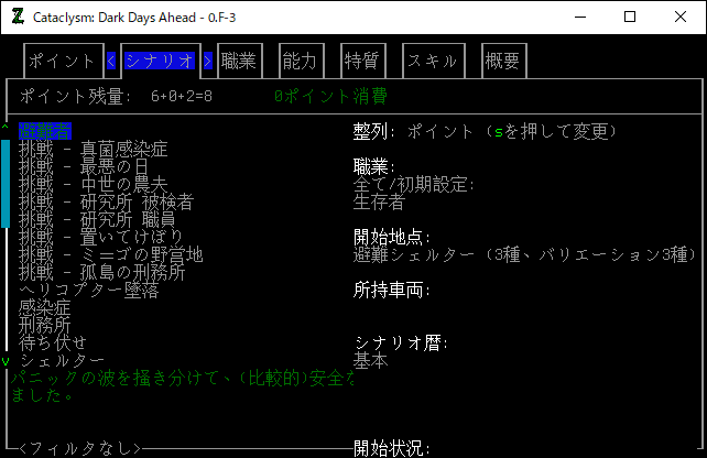 この投稿は「Cataclysm Dark Days Ahead」のプレイ日記です。目次はこちら。