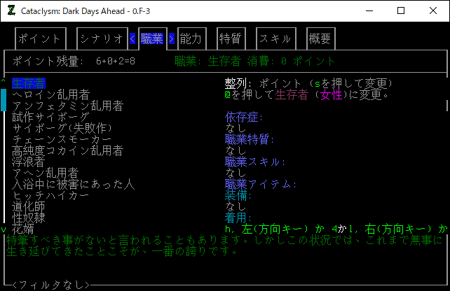 Cataclysm Dark Days Aheadは日本語版Wikiを読めば、こんなブログを見なくても遊ぶことができます。以下に日本語版Wikiのリンクを貼ります。