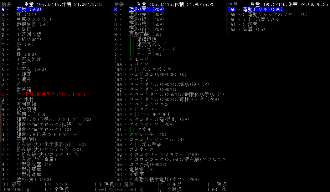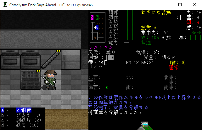 この投稿は「Cataclysm Dark Days Ahead」のプレイ日記です。毎日更新をします。目次はこちら。