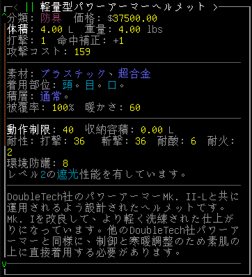 パワーアーマーヘルメットは動作制限が40もある。強力な耐性を備えているから優秀な装備に違いない。今のアレキサンダーには使いこなせないだろうな。