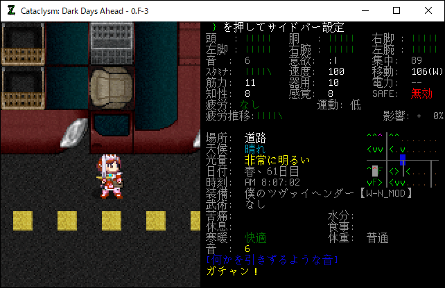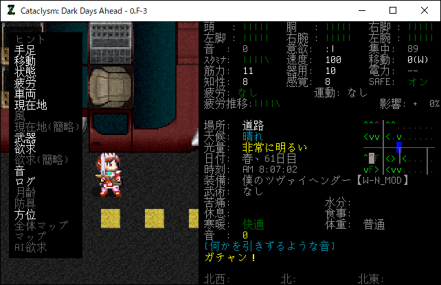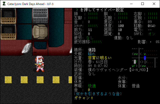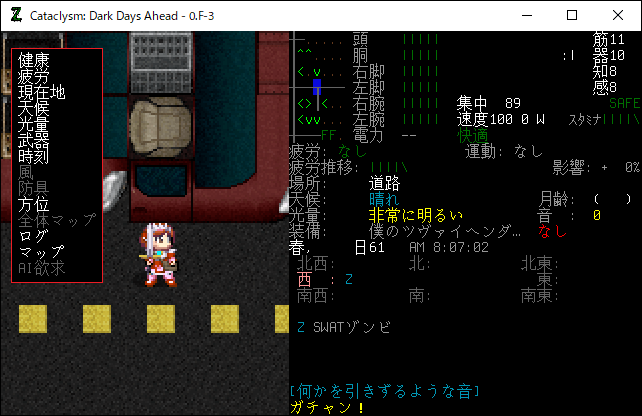 この投稿は「Cataclysm Dark Days Ahead」のプレイ日記です。目次はこちら。