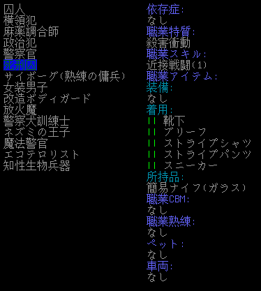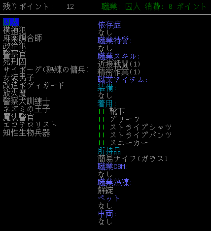 それではシナリオ「刑務所」の職業を見ていきましょう。「囚人」は地味だし弱そうだ。できることなら選びたくない。