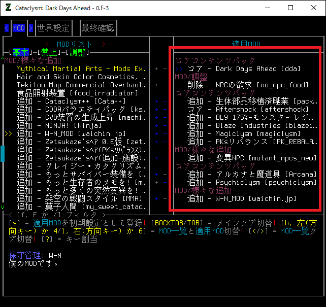たかが5~6個のMODを導入しただけなのにエラーが出まくった。「Kenan-Modpack」を使用するのは無理かもしれません。丸一日かけてエラーが出ないMODを吟味しないと、まともに動かない。
