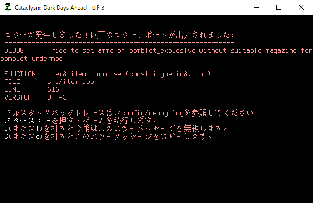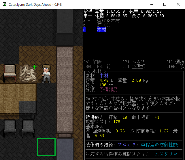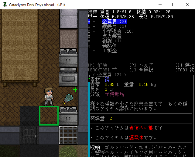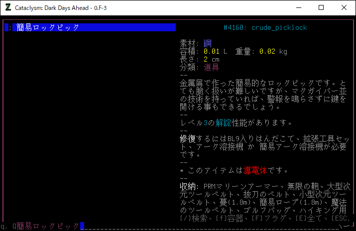 この投稿は「Cataclysm Dark Days Ahead」のプレイ日記です。目次はこちら。