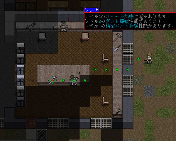 スキルが低いせいか、何度も開錠を試みても失敗してしまう。ようやく成功して事務所内のゾンビ警察犬と対決することになりました。この犬はマジで強いんだよねえ。古いバージョンではフェラルランナーと同レベルの戦闘力でした。
