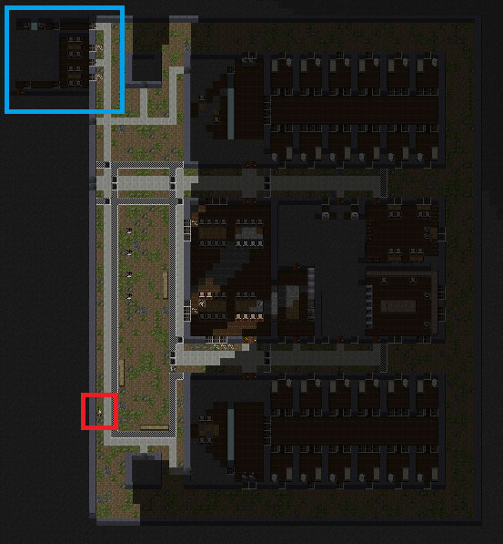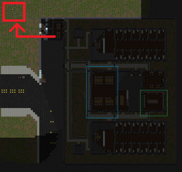 刑務所内の地形をほぼ全て調べました。やっぱり出口らしき部屋は左上の事務所なんだよなあ。他の場所は頑丈そうな壁に囲まれており、開錠できるようなドアが無い。