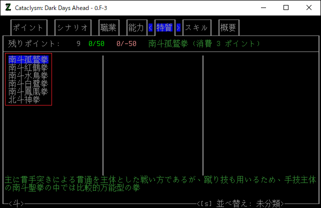 そういえば「北斗MOD」を導入したのだった。検索したところ北斗神拳と南斗聖拳の特質がありました。美しいユダ様の南斗紅鶴拳を使いたいぜ。俺は北斗の拳の主役は南斗だと思っているからね。北斗は行き当たりばったりで行動しているから共感できないわ。まあラオウが登場するところまでしか読んだことのないニワカだけど。
