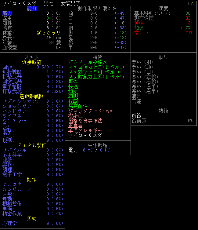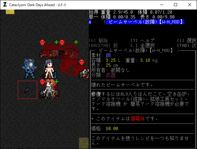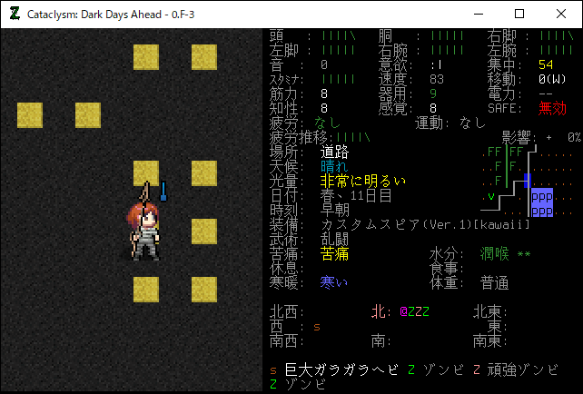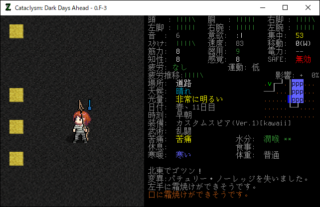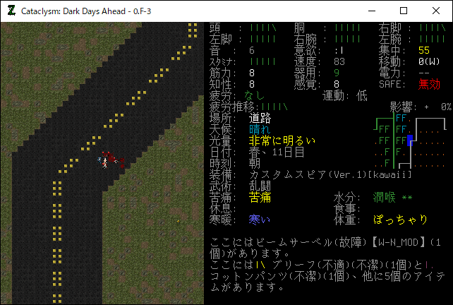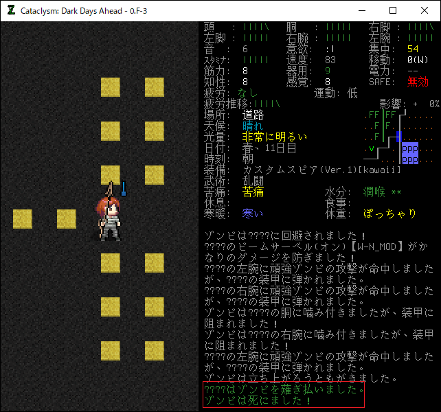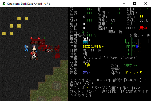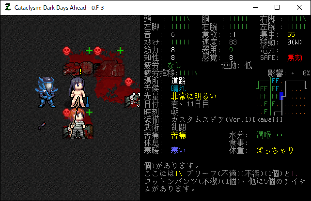 この投稿は「Cataclysm Dark Days Ahead」のプレイ日記です。目次はこちら。前回のプレイ日記はこちら。