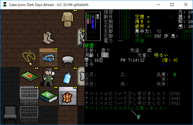 この投稿は「Cataclysm Dark Days Ahead」のプレイ日記です。毎日更新をします。目次はこちら。