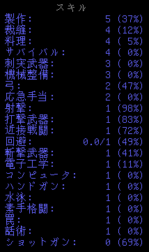 次は機械整備スキルを上げようかな。取引スキルや話術スキルは後回しで良いだろう。製作スキルは大切だけど6もあるからとりあえず放置です。